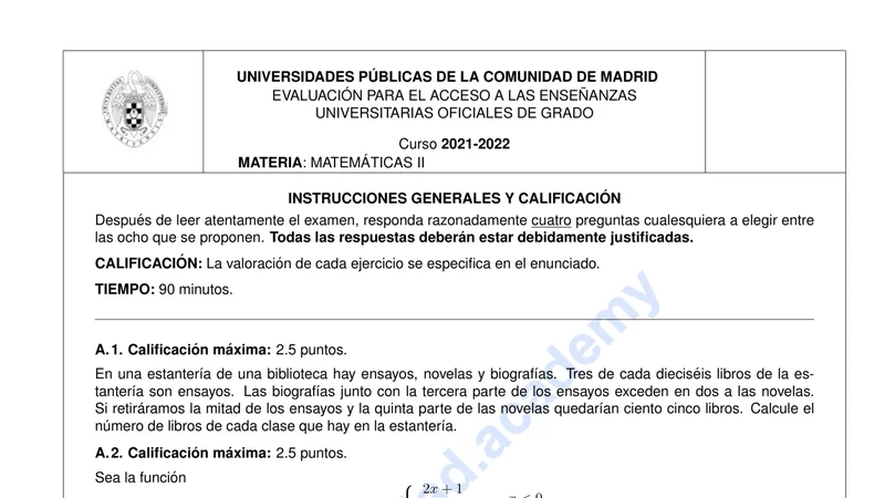 Examen PAU Matemáticas II selectividad Madrid — Extraordinaria 2022