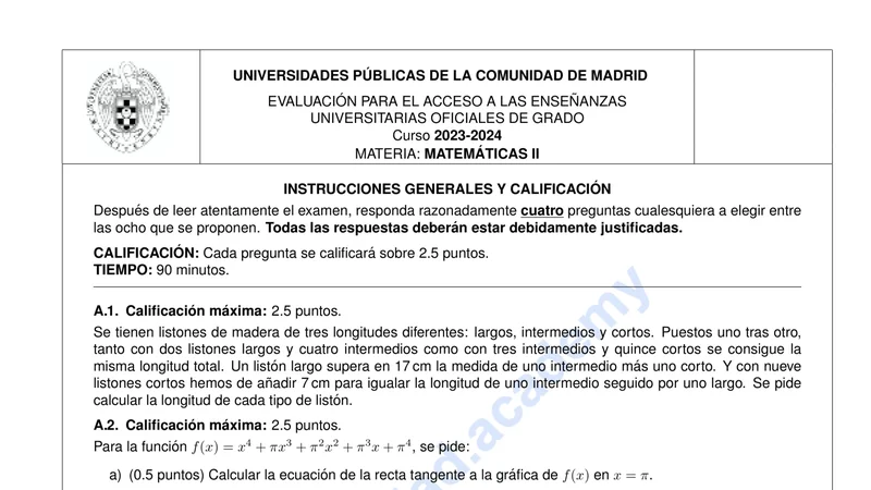 Reservar clase gratis →Examen de Matemáticas II selectividad Madrid (Ordinaria 2024)