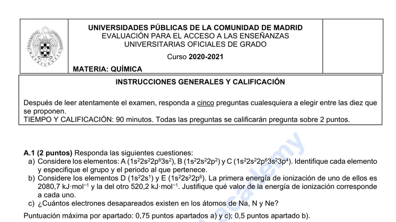 Reservar clase gratis →Examen de Química selectividad Madrid (Extraordinaria 2021)