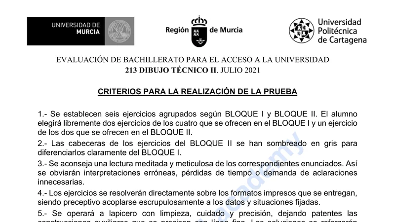 Examen de Dibujo Técnico II selectividad Región de Murcia — Extraordinaria 2021
