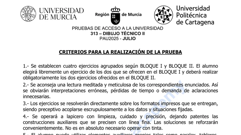 Examen de Dibujo Técnico II selectividad Región de Murcia — Extraordinaria 2025