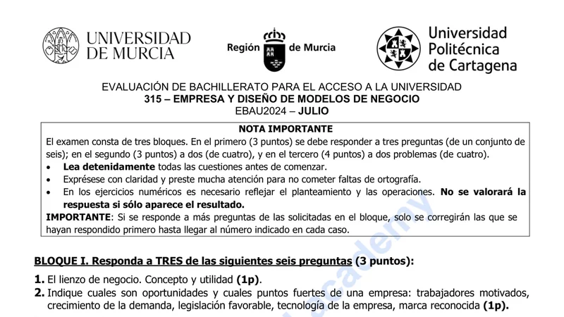 Reservar clase gratis →Examen de Economía selectividad Murcia (Extraordinaria 2024)