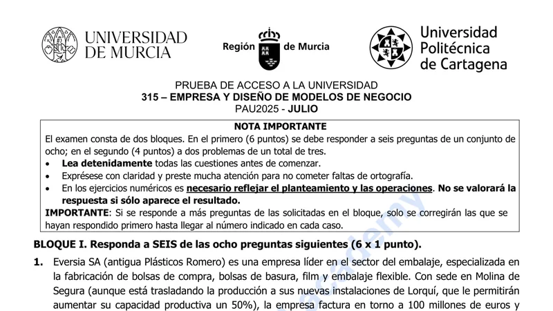 Reservar clase gratis →Examen de Economía selectividad Murcia (Extraordinaria 2025)