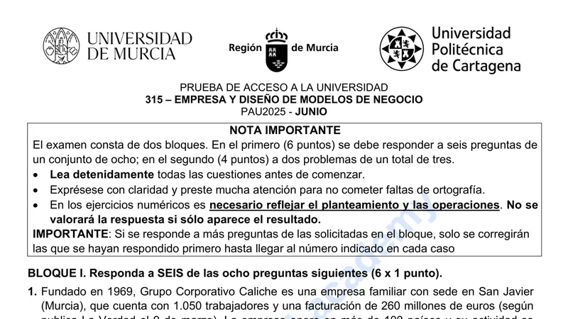Examen PAU Economía selectividad Murcia — Ordinaria 2025