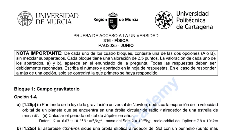 Examen PAU Física selectividad Murcia — Ordinaria 2025