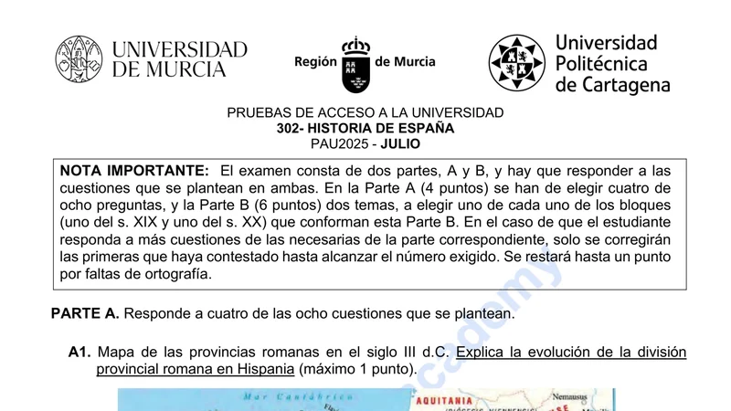 Reservar clase gratis →Examen de Historia de España selectividad Murcia (Extraordinaria 2025)