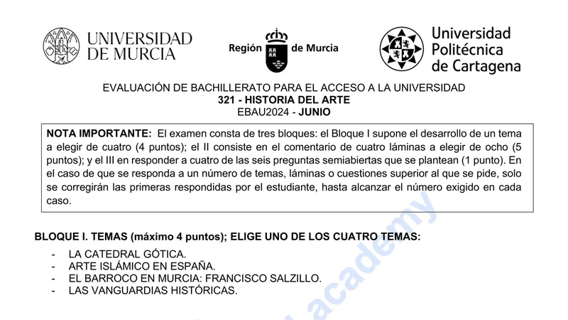 Examen PAU Historia del Arte selectividad Murcia — Ordinaria 2024