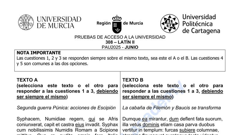 Examen PAU Latín II selectividad Murcia — Ordinaria 2025