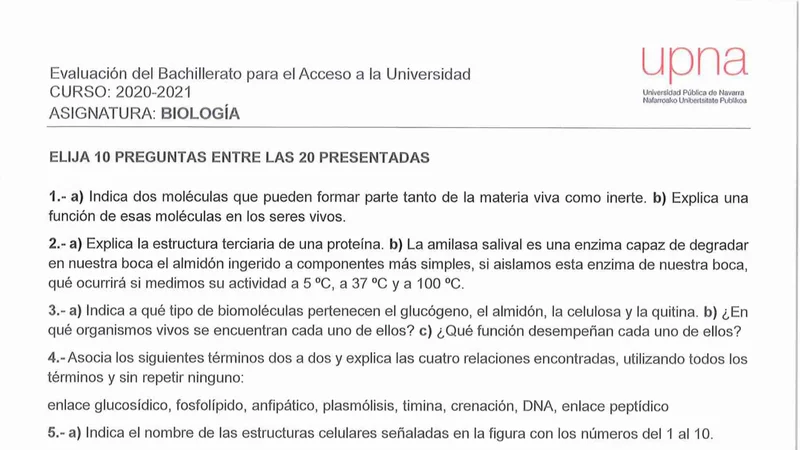 Reservar clase gratis →Examen de Biología selectividad Navarra (Extraordinaria 2021)