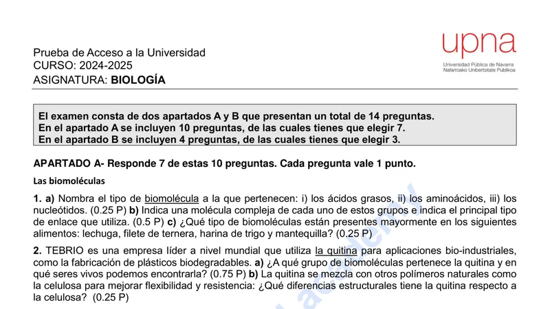 Reservar clase gratis →Examen de Biología selectividad Navarra (Extraordinaria 2025)
