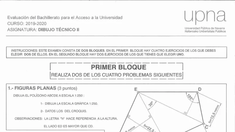 Examen de Dibujo Técnico II selectividad Navarra — Ordinaria 2020