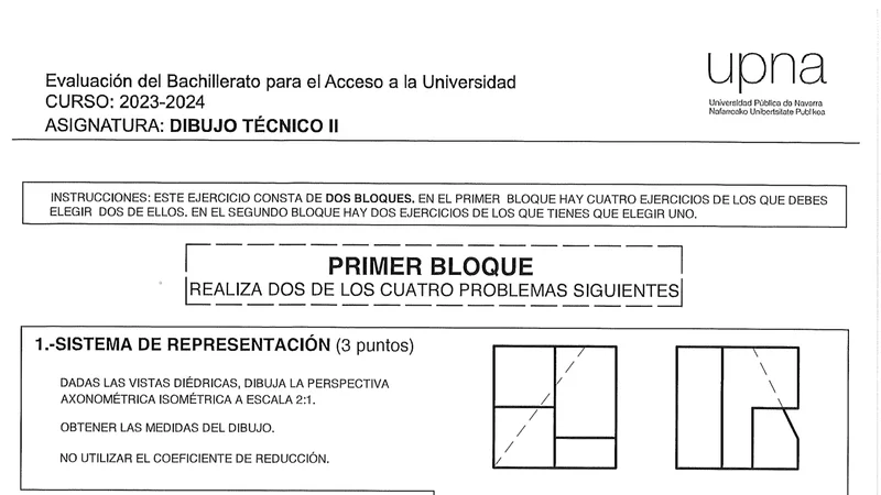 Examen de Dibujo Técnico II selectividad Navarra — Ordinaria 2024