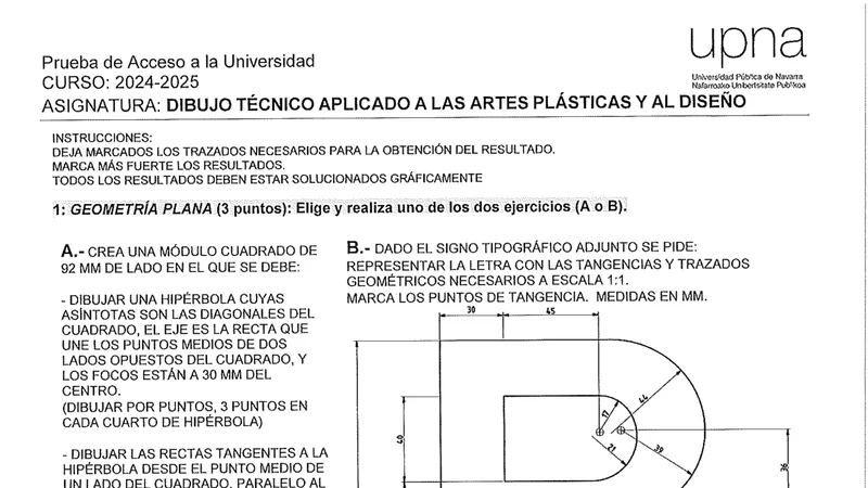 Examen de Dibujo Técnico II selectividad Navarra — Extraordinaria 2025
