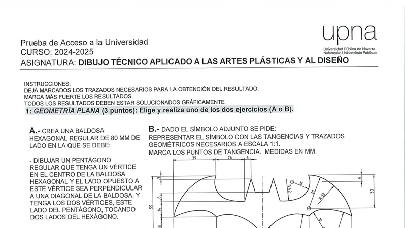 Examen de Dibujo Técnico II selectividad Navarra — Ordinaria 2025