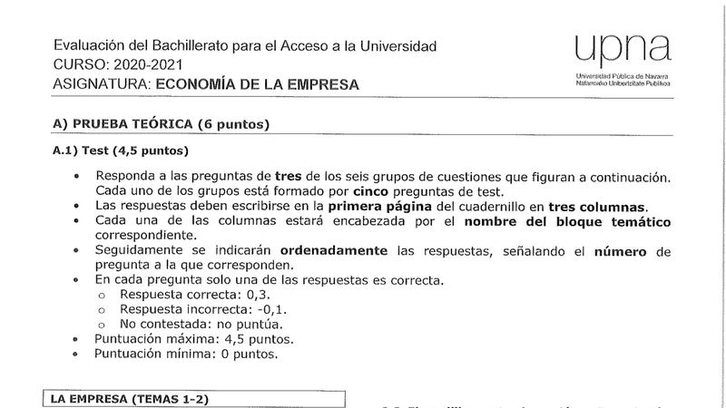 Reservar clase gratis →Examen de Economía selectividad Navarra (Extraordinaria 2021)
