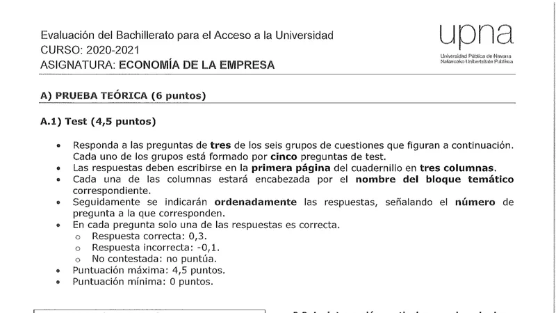 Reservar clase gratis →Examen de Economía selectividad Navarra (Ordinaria 2021)