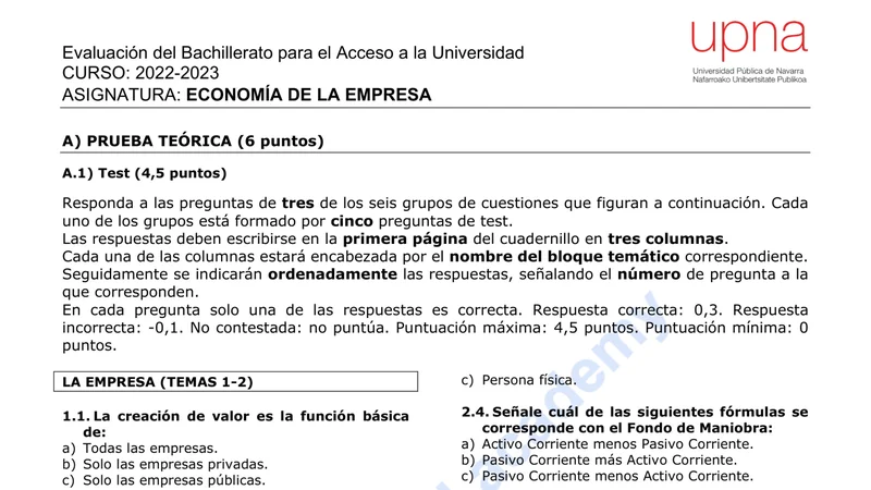 Reservar clase gratis →Examen de Economía selectividad Navarra (Ordinaria 2023)