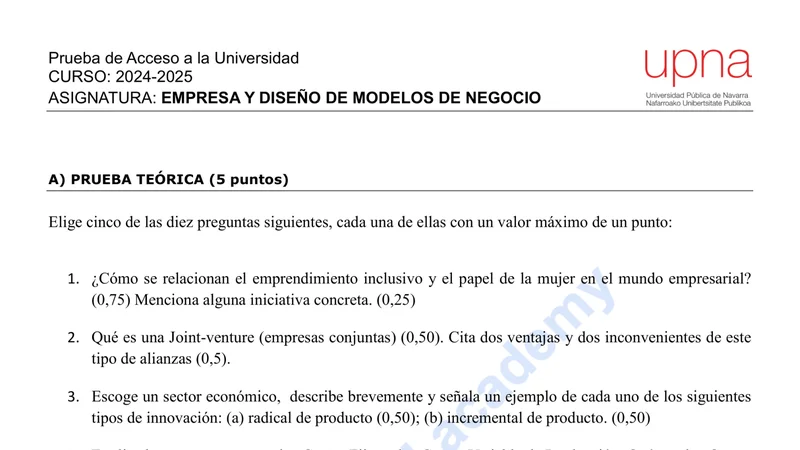 Reservar clase gratis →Examen de Economía selectividad Navarra (Ordinaria 2025)