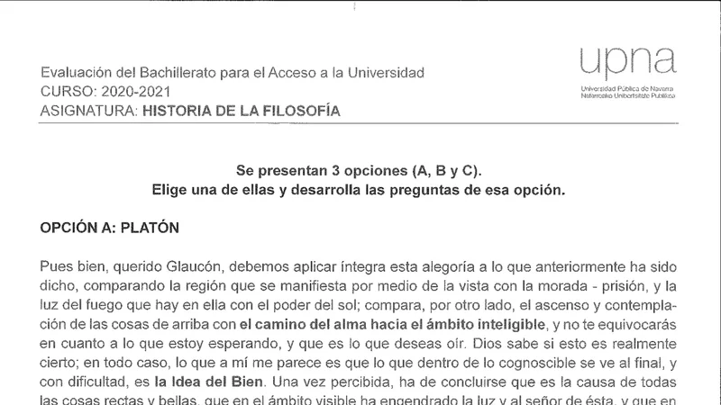 Examen de Historia de la Filosofía selectividad Navarra — Extraordinaria 2021