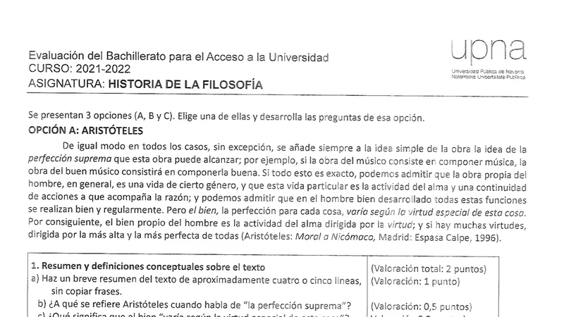 Examen de Historia de la Filosofía selectividad Navarra — Ordinaria 2022