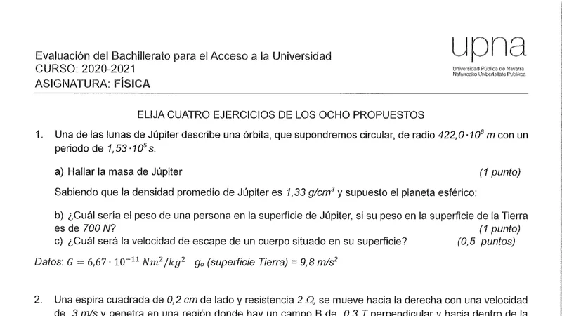 Examen PAU Física selectividad Navarra — Extraordinaria 2021