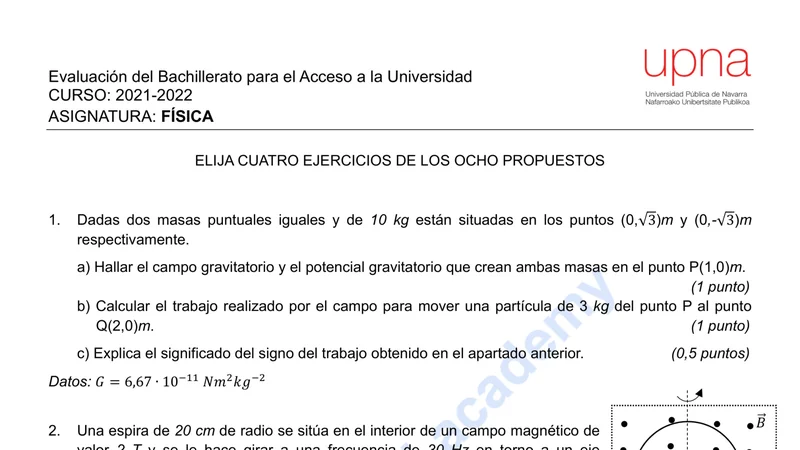 Reservar clase gratis →Examen de Física selectividad Navarra (Ordinaria 2022)