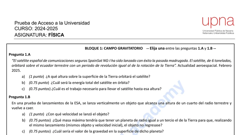Reservar clase gratis →Examen de Física selectividad Navarra (Ordinaria 2025)