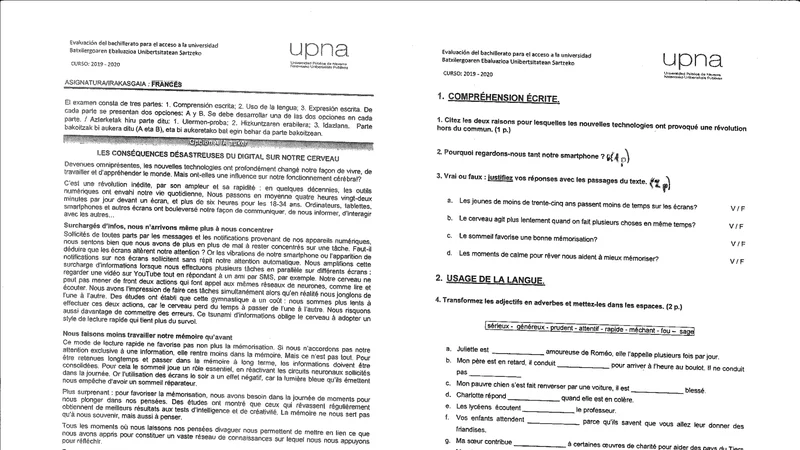 Reservar clase gratis →Examen de Francés selectividad Navarra (Ordinaria 2020)
