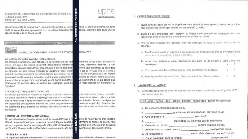 Reservar clase gratis →Examen de Francés selectividad Navarra (Extraordinaria 2021)