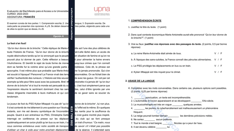 Reservar clase gratis →Examen de Francés selectividad Navarra (Ordinaria 2023)
