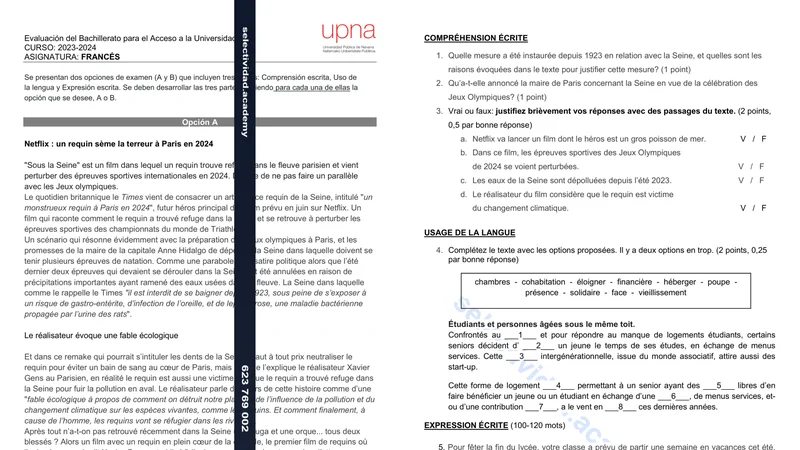 Reservar clase gratis →Examen de Francés selectividad Navarra (Extraordinaria 2024)