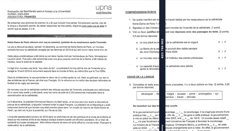 Examen PAU Francés selectividad Navarra — Ordinaria 2024