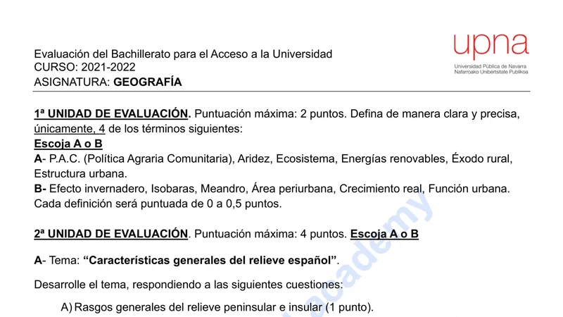 Examen PAU Geografía selectividad Navarra — Ordinaria 2022