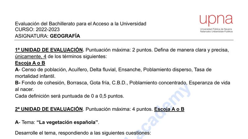 Reservar clase gratis →Examen de Geografía selectividad Navarra (Ordinaria 2023)