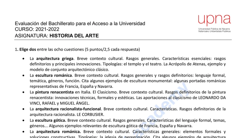 Reservar clase gratis →Examen de Historia del Arte selectividad Navarra (Ordinaria 2022)