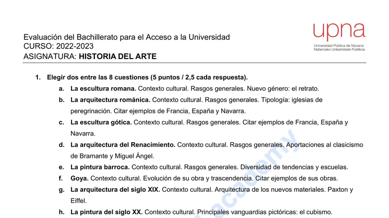 Reservar clase gratis →Examen de Historia del Arte selectividad Navarra (Ordinaria 2023)
