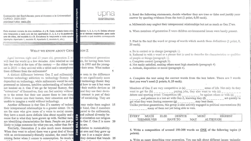 Reservar clase gratis →Examen de Inglés selectividad Navarra (Extraordinaria 2021)