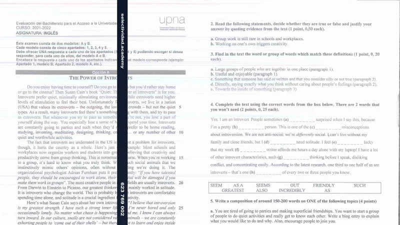 Reservar clase gratis →Examen de Inglés selectividad Navarra (Extraordinaria 2022)
