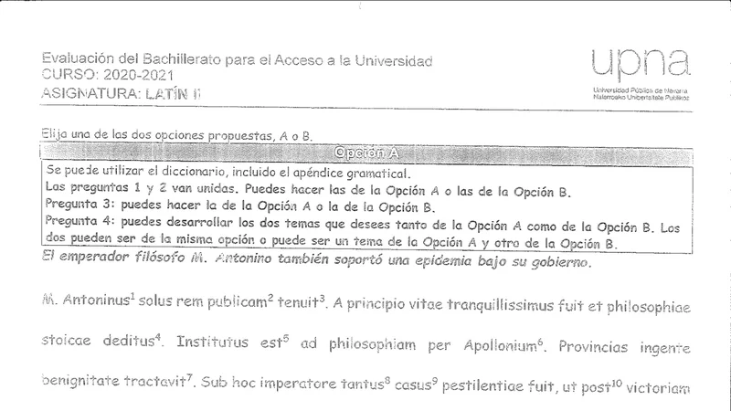 Examen PAU Latín II selectividad Navarra — Ordinaria 2021