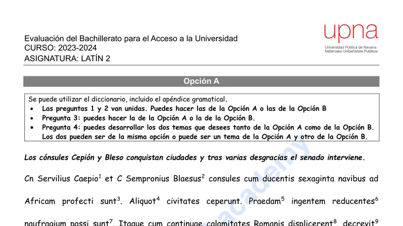 Reservar clase gratis →Examen de Latín II selectividad Navarra (Extraordinaria 2024)