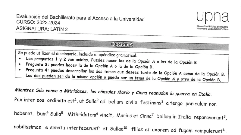 Examen PAU Latín II selectividad Navarra — Ordinaria 2024