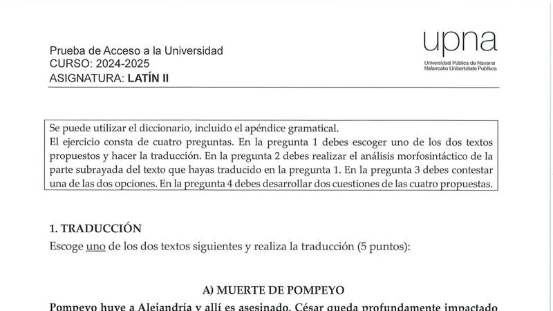 Reservar clase gratis →Examen de Latín II selectividad Navarra (Extraordinaria 2025)