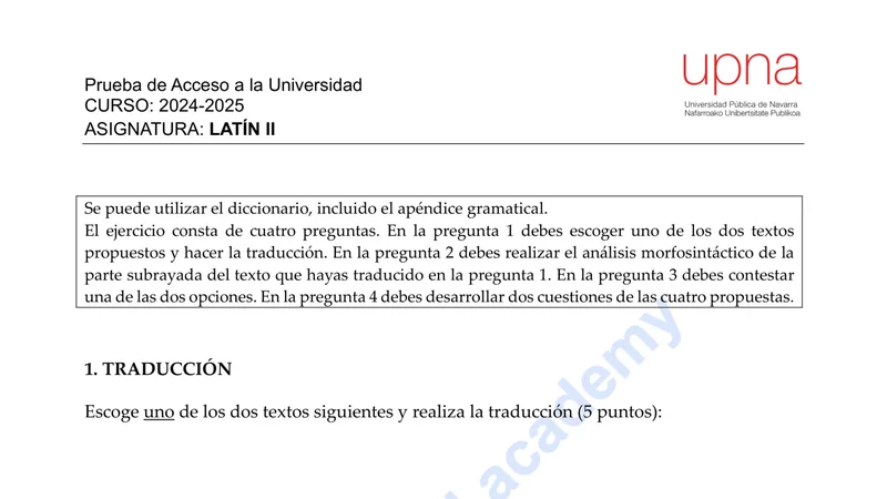 Reservar clase gratis →Examen de Latín II selectividad Navarra (Ordinaria 2025)
