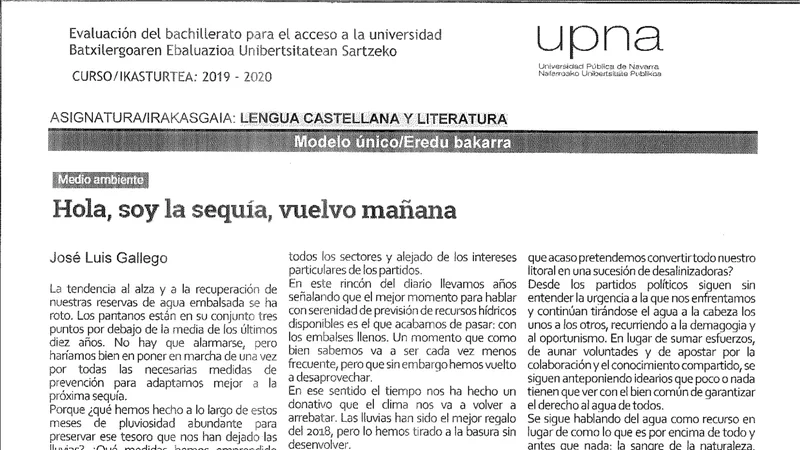 Reservar clase gratis →Examen de Lengua Castellana selectividad Navarra (Extraordinaria 2020)