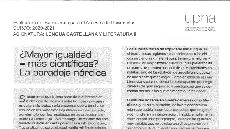 Reservar clase gratis →Examen de Lengua Castellana selectividad Navarra (Extraordinaria 2021)