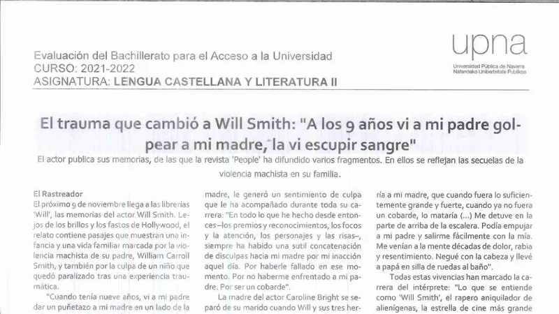 Reservar clase gratis →Examen de Lengua Castellana selectividad Navarra (Extraordinaria 2022)