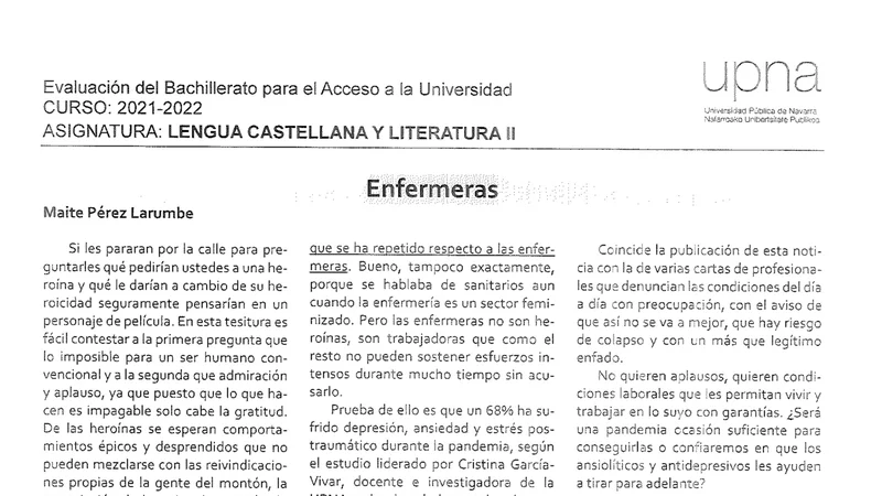 Examen PAU Lengua Castellana selectividad Navarra — Ordinaria 2022