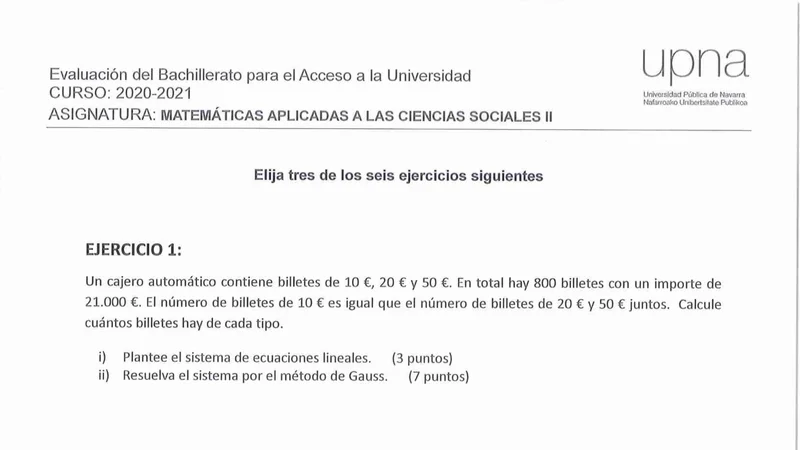 Examen PAU Matemáticas CCSS selectividad Navarra — Extraordinaria 2021