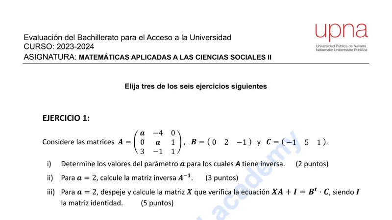 Reservar clase gratis →Examen de Matemáticas CCSS selectividad Navarra (Extraordinaria 2024)
