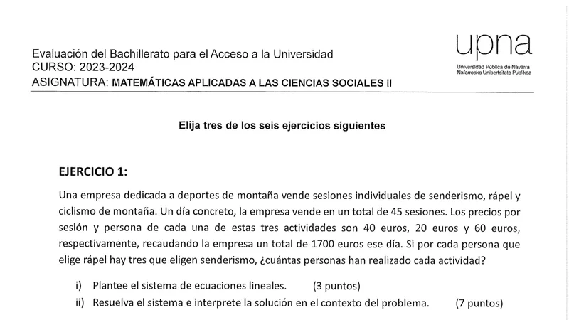 Examen PAU Matemáticas CCSS selectividad Navarra — Ordinaria 2024